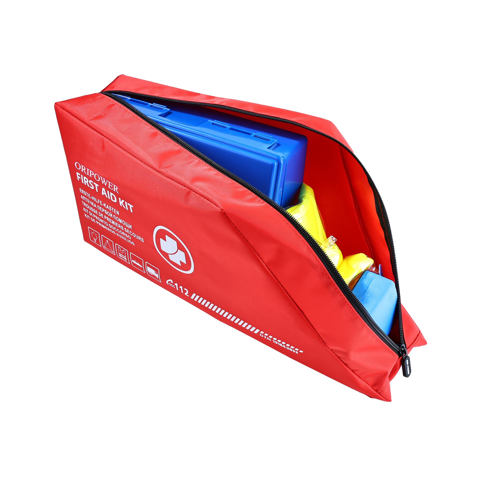Bereiten Sie sich mit dem ORI-POWER DIN13164 Erste-Hilfe-Set auf jeden Notfall vor, ein Muss für Unternehmen, die Wert auf Sicherheit legen. Dieses Set in kompakter Trapezform (44,5 x10,5 x20 cm) enthält 25 wichtige Gegenstände, die für eine Vielzahl von Situationen geeignet sind: Heftpflaster (verschiedene Größen), sterile Vliespads, Brandwunden (60 x80 cm), eine Erste-Hilfe-Decke (160 x210 cm), elastische Bandagen, ein Warndreieck (E-Prüfzeichen-zertifiziert, 43 cm), eine reflektierende Weste (120 g) und sogar ein blaues H7-Set für Notfälle im Fahrzeug. Hergestellt aus strapazierfähigem, wasserabweisendem Material, sorgt es für lang anhaltende Zuverlässigkeit in anspruchsvollen Umgebungen. Dieses Kit erfüllt strenge DIN13164 Sicherheitsstandards und eignet sich daher perfekt für Arbeitsplätze, Baustellen, Flotten oder Einzelhandelsgeschäfte. Mit einem Gewicht von knapp 1 kg lässt er sich leicht in Fahrzeugen, Büros oder Lagern verstauen. Statten Sie Ihr Team mit Vertrauen aus – die Staffelpreise beginnen bei 5,02 $ pro Set für Bestellungen von 5000 Einheiten. Benötigen Sie eine maßgeschneiderte Lösung?